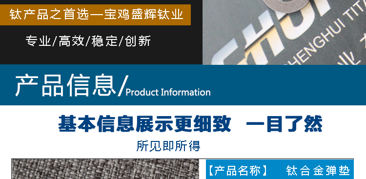 從細節出發,站在專業的角度,始終如一堅守品質的最終使用價值,產品和服務同時送達是盛輝鈦業對客戶的承諾。寶雞盛輝,將以不變的摯誠,用心聆聽,貼心關懷,以至全至尊的服務,與新老客戶攜手共贏!