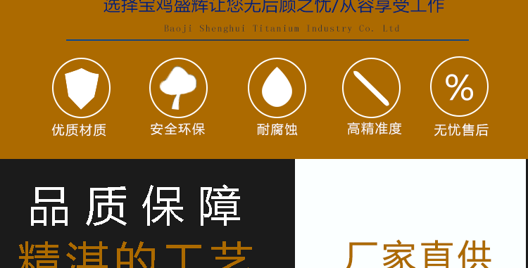 從細節出發,站在專業的角度,始終如一堅守品質的最終使用價值,產品和服務同時送達是盛輝鈦業對客戶的承諾。寶雞盛輝,將以不變的摯誠,用心聆聽,貼心關懷,以至全至尊的服務,與新老客戶攜手共贏!