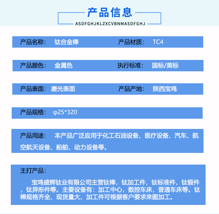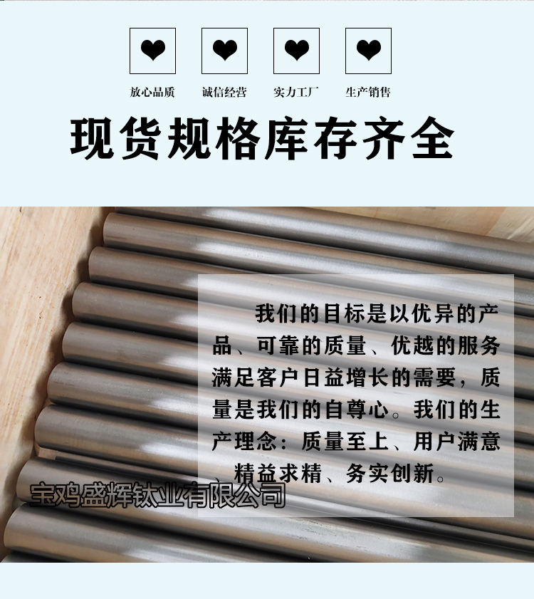 寶雞盛輝鈦業有限公司是一家主要從事鈦及鈦合金棒,鈦環,鈦法蘭及鈦合金板材的高新技術企業,公司提供鈦環,鈦合金棒批發,鈦環的生產工藝服務,以人為本,質量取勝為宗旨:18791863990,18740375975