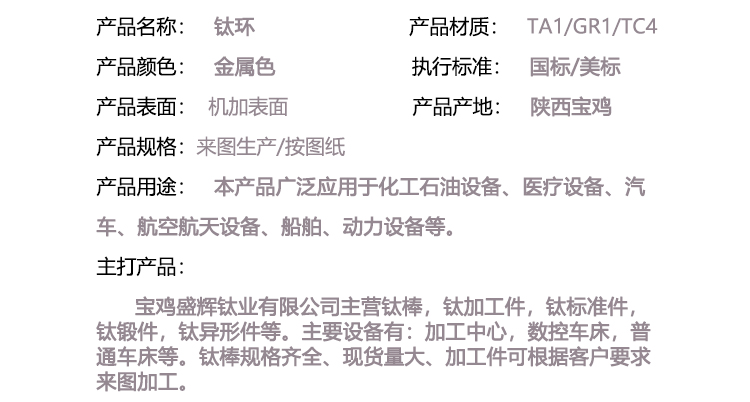 寶雞盛輝鈦業有限公司主營鈦棒,鈦加工件,鈦標準件,鈦鍛件,鈦異