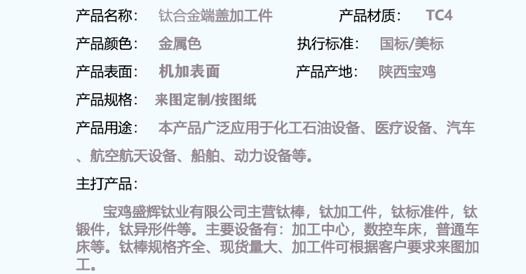 寶雞盛輝鈦業(yè)有限公司主營鈦棒,鈦加工件,鈦標準件,鈦鍛件,鈦異