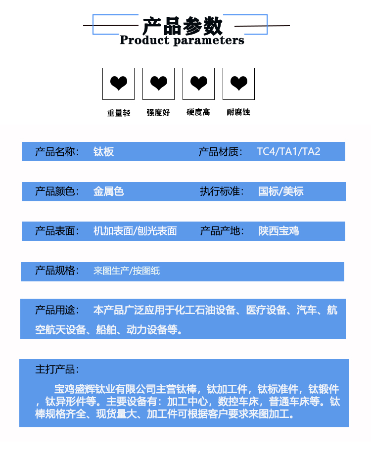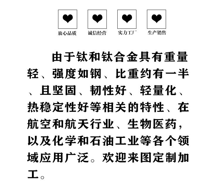 寶雞盛輝鈦業(yè)有限公司是一家主要從事鈦及鈦合金棒,鈦環(huán),鈦法蘭及鈦合金板材的高新技術(shù)企業(yè),公司提供鈦環(huán),鈦合金棒批發(fā),鈦環(huán)的生產(chǎn)工藝服務(wù),以人為本,質(zhì)量取勝為宗旨:18791863990,18740375975