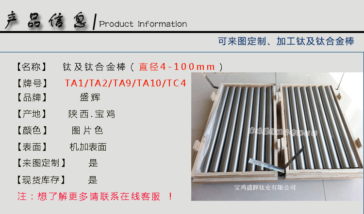 寶雞盛輝鈦業有限公司是一家主要從事鈦及鈦合金棒,鈦環,鈦法蘭及鈦合金板材的高新技術企業,公司提供鈦環,鈦合金棒批發,鈦環的生產工藝服務,以人為本,質量取勝為宗旨:18791863990,18740375975