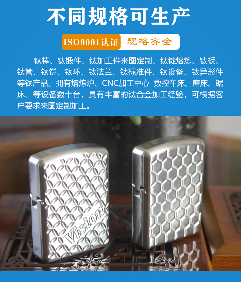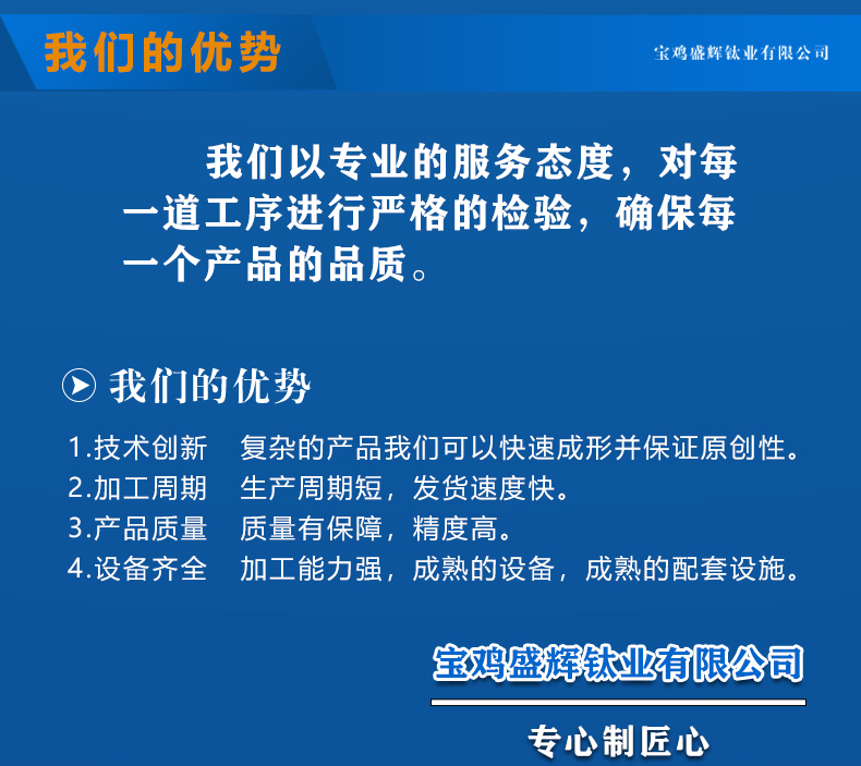 寶雞盛輝鈦業有限公司是一家主要從事鈦及鈦合金棒,鈦環,鈦法蘭及鈦合金板材的高新技術企業,公司提供鈦環,鈦合金棒批發,鈦環的生產工藝服務,以人為本,質量取勝為宗旨:18791863990,18740375975