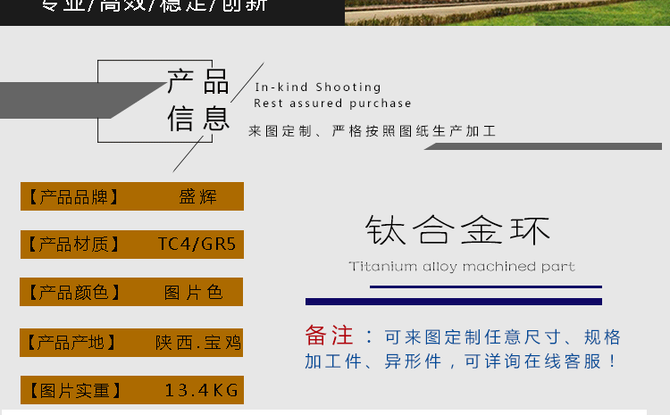 對(duì)每一位客戶——我們都詳細(xì)地了解和分析不同需要,在提供方案的同時(shí)從產(chǎn)品兼容性、可擴(kuò)展性及技術(shù)支持等方面進(jìn)行充分的考慮,以針對(duì)客戶的需要提供優(yōu)秀的方案。“用戶至上”是我們一貫的宗旨。嚴(yán)格而行之有效的售前、售后服務(wù),是寶雞盛輝盛輝鈦業(yè)信心的保證。 售前售后電話:18740375975