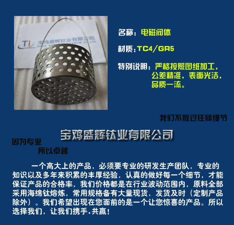 寶雞盛輝鈦業有限公司是一家主要從事鈦及鈦合金棒,鈦環,鈦法蘭及鈦合金板材的高新技術企業,公司提供鈦環,鈦合金棒批發,鈦環的生產工藝服務,以人為本,質量取勝為宗旨:18791863990,18740375975