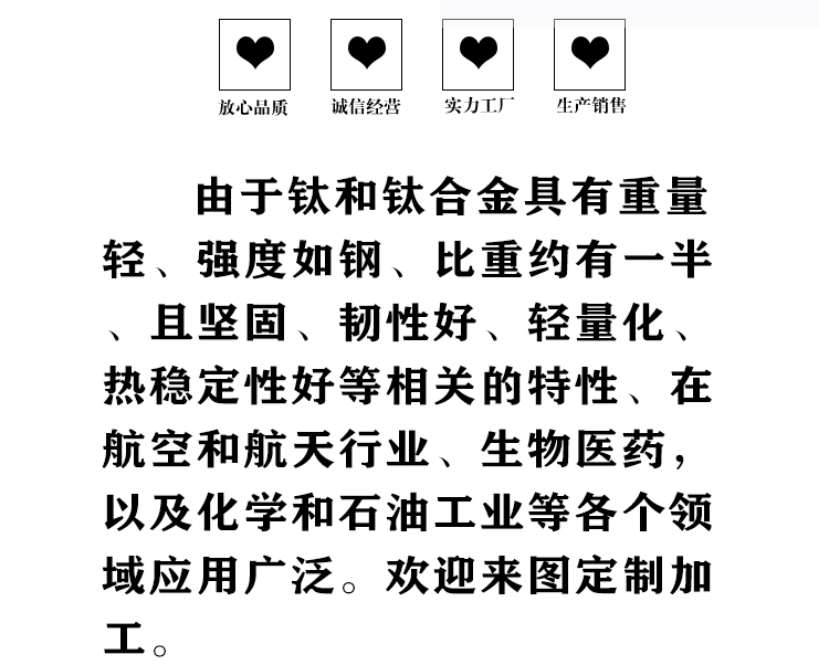 寶雞盛輝鈦業有限公司是一家主要從事鈦及鈦合金棒,鈦環,鈦法蘭及鈦合金板材的高新技術企業,公司提供鈦環,鈦合金棒批發,鈦環的生產工藝服務,以人為本,質量取勝為宗旨:18791863990,18740375975